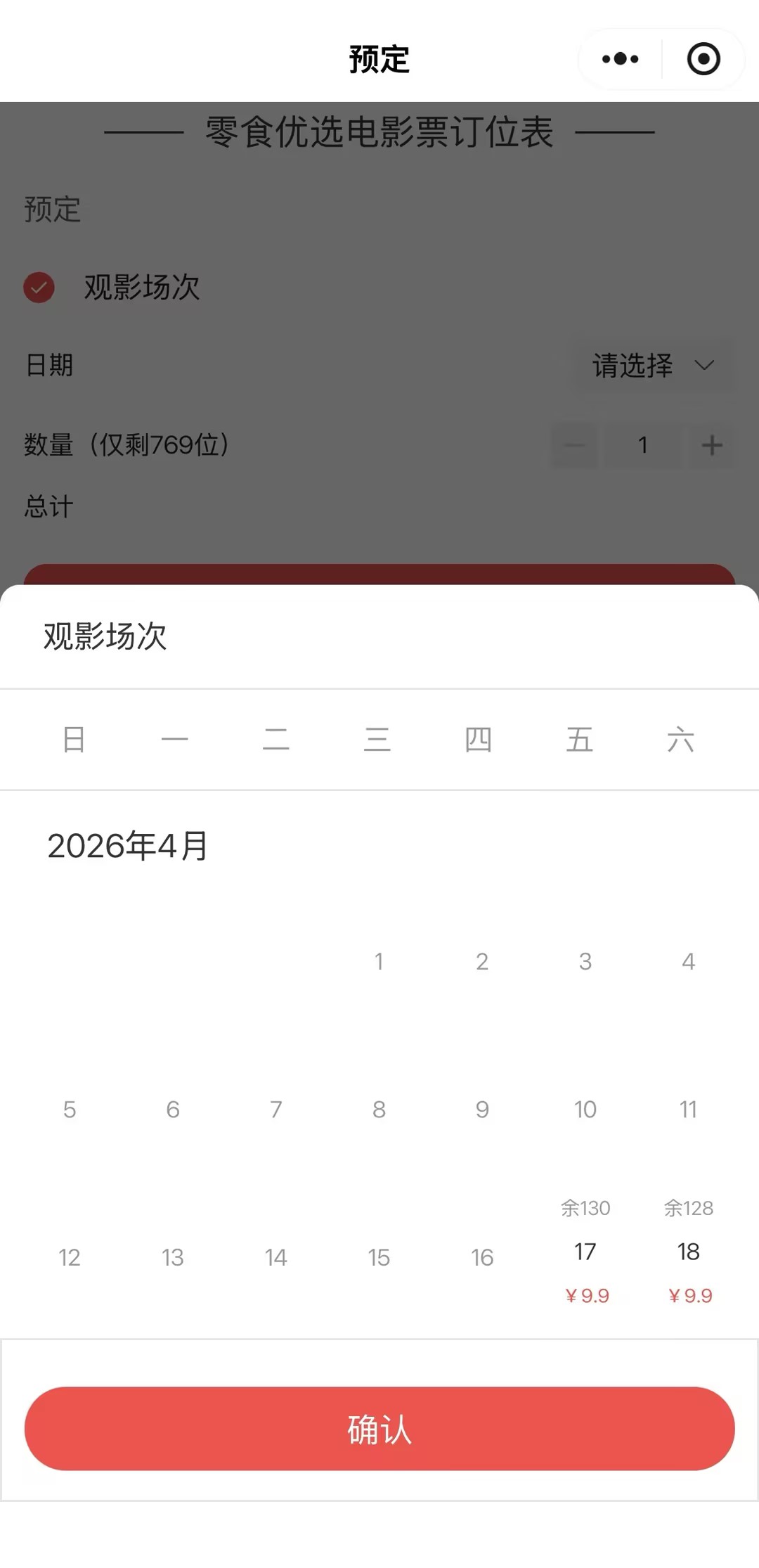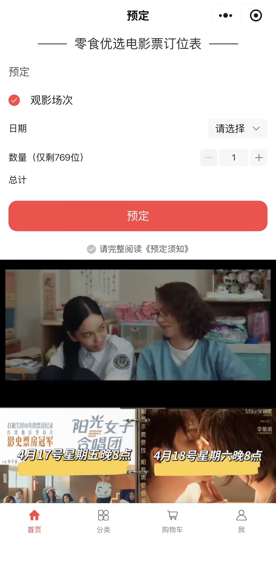 零食优选看电影 电影票预定订位案例小程序