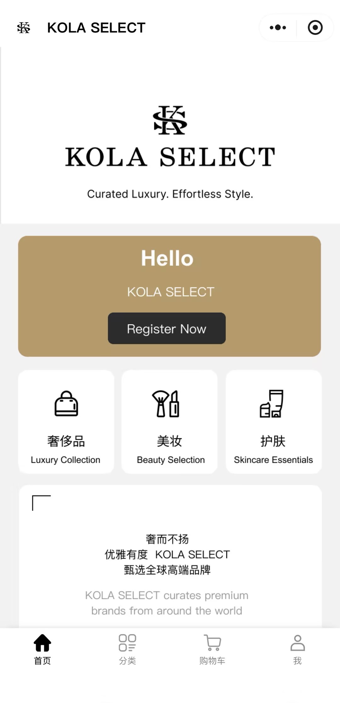 KOLA SELECT 美妆个护进口商品销售案例小程序