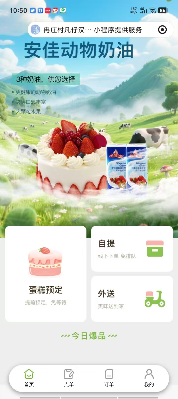 冉庄村凡仔汉堡店 蛋糕点餐案例小程序