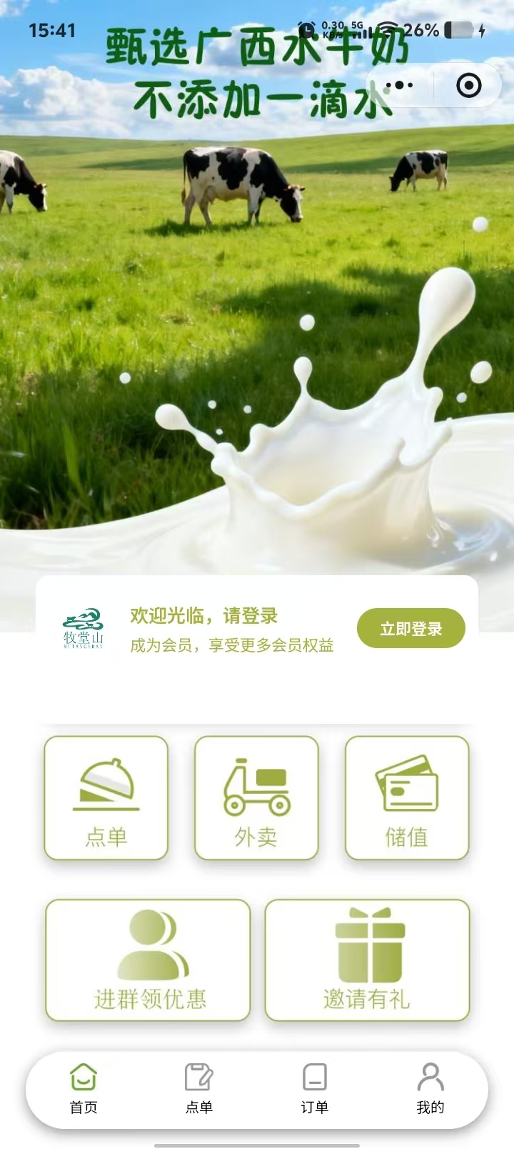 牧堂山 牛奶点餐案例小程序