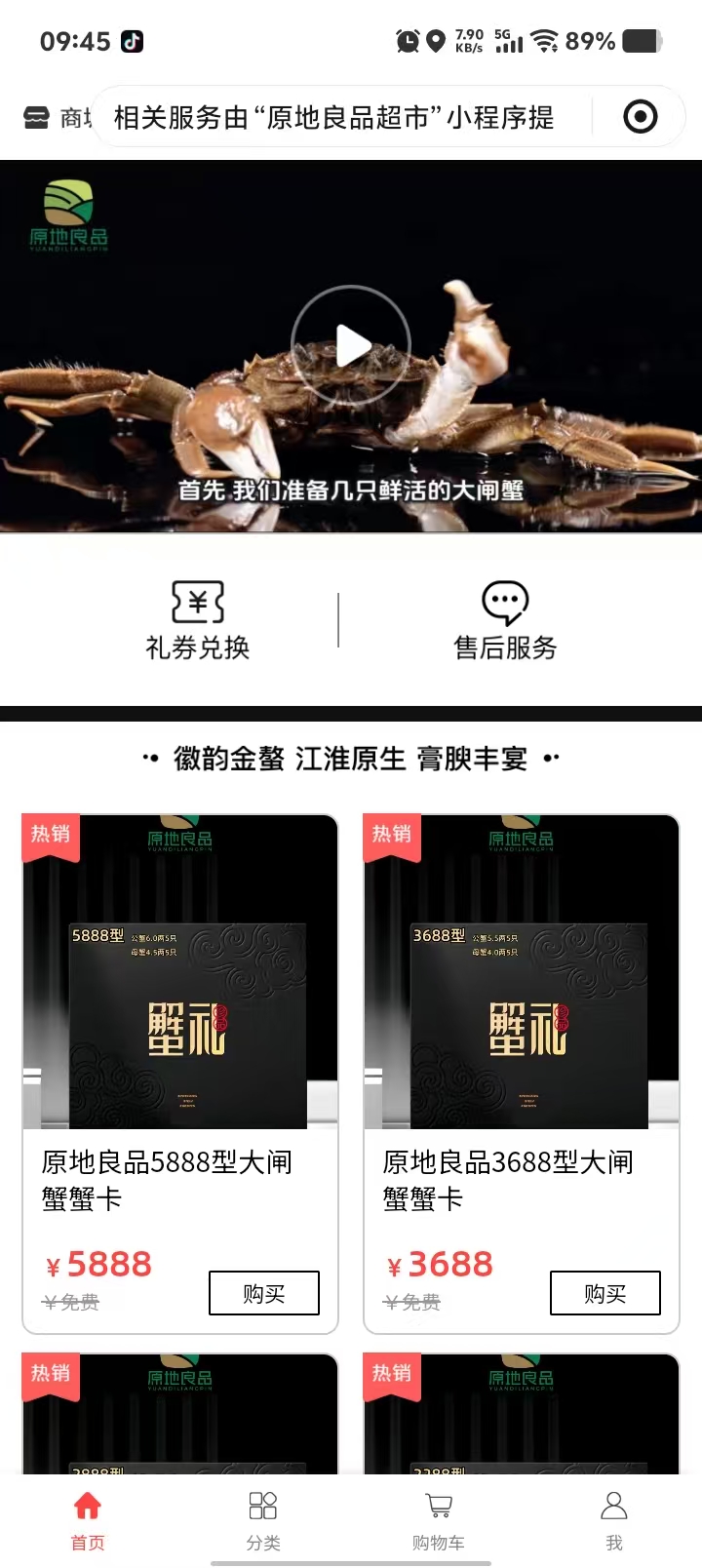 原地良品超市 水鲜大闸蟹案例小程序