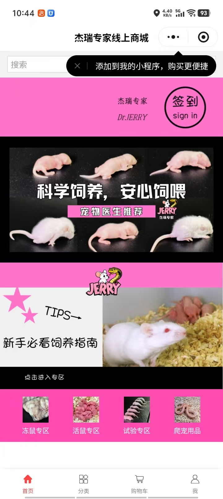 杰瑞专家小白鼠 宠物商城案例小程序