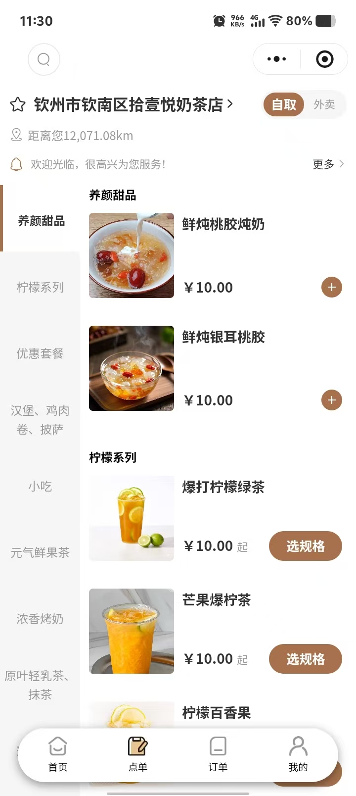 钦州市钦南区拾壹悦奶茶店 奶茶咖啡店案例小程序