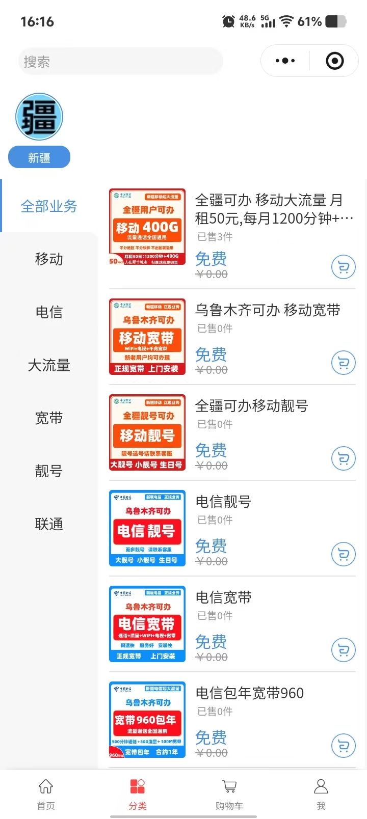 恒鑫远通通讯店 流量卡案例小程序