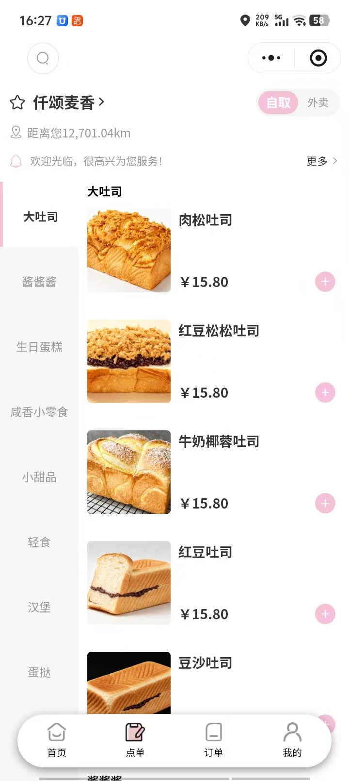 仟颂麦香 面包点餐案例小程序