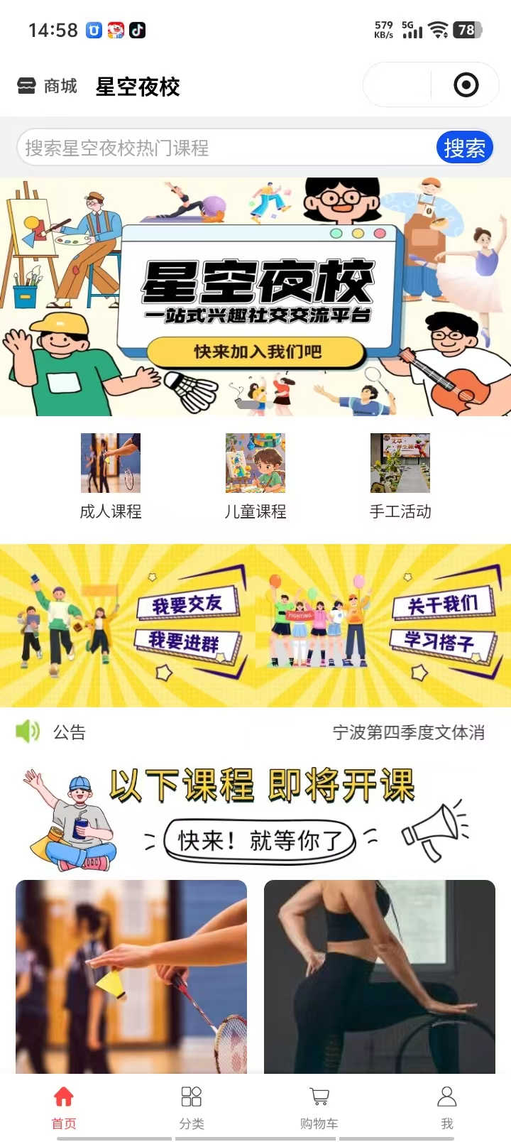 新明星空夜校 课程商城案例小程序
