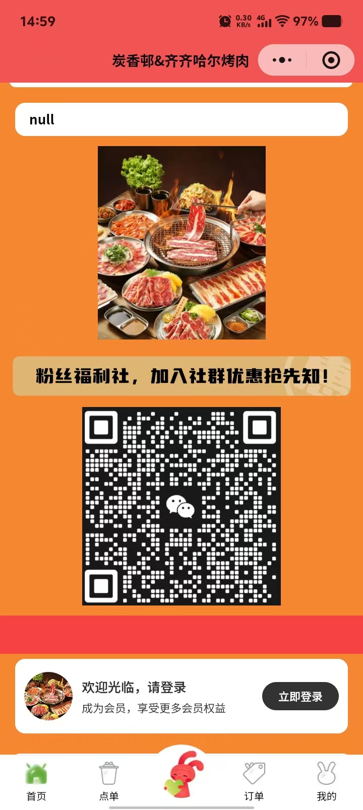 炭香邨 烤肉点餐案例小程序
