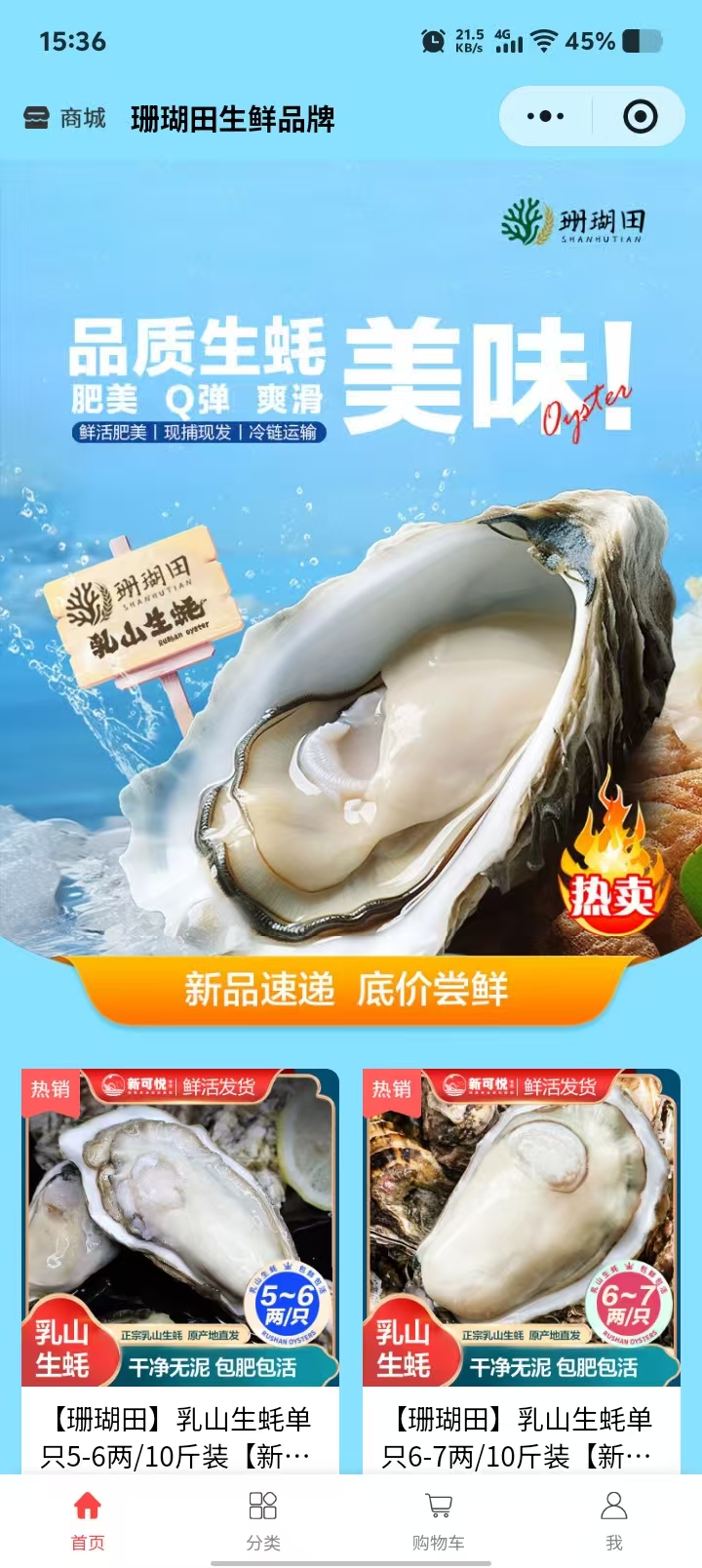 威海珊瑚田 海鲜批发案例小程序