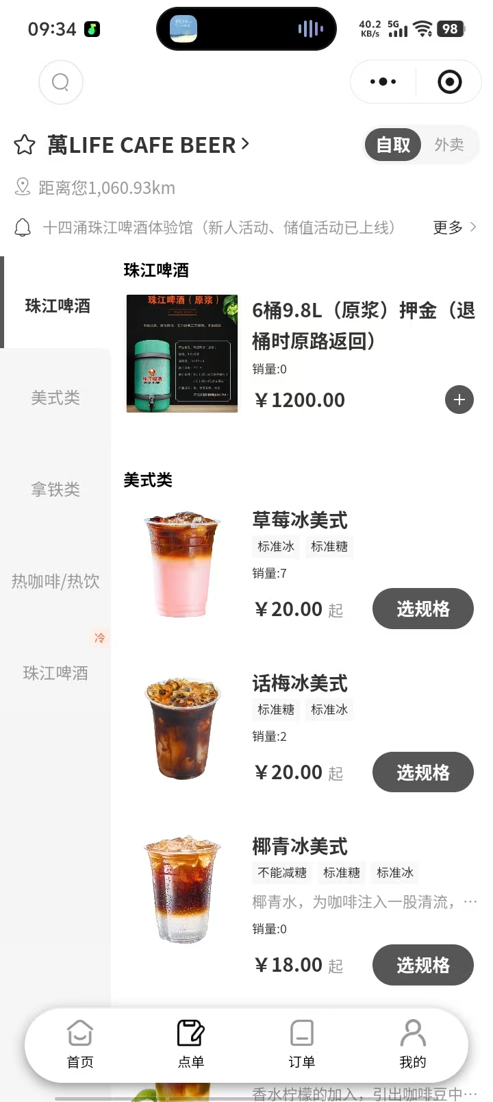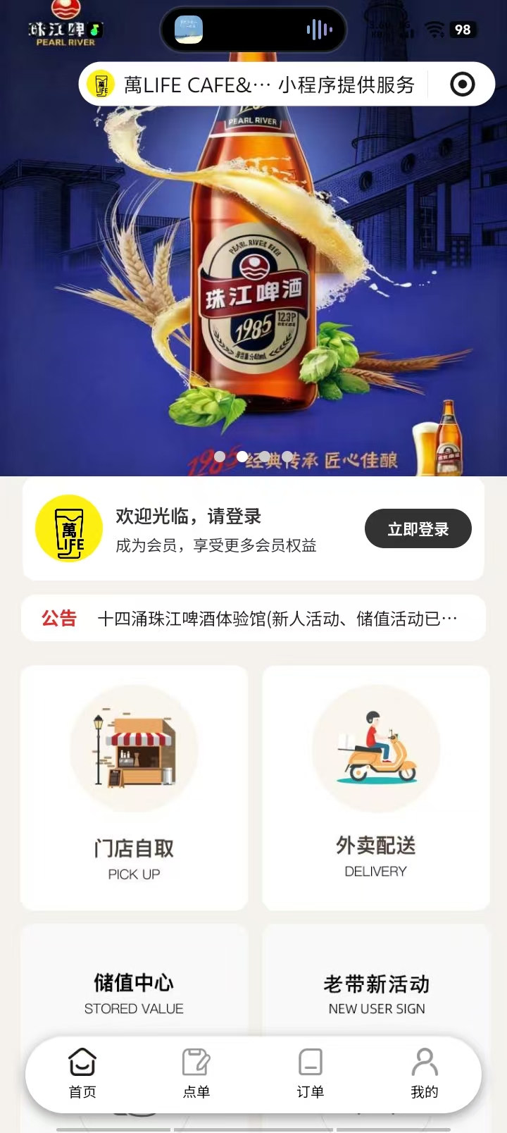 萬LIFE CAFE&BEER 酒水点餐案例小程序