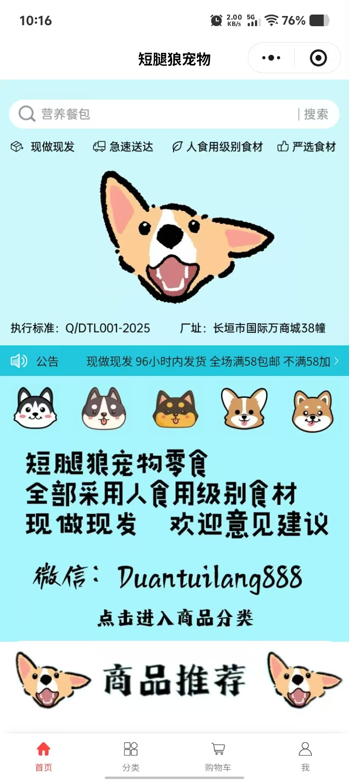 短腿狼宠物鲜食 狗粮猫粮案例小程序