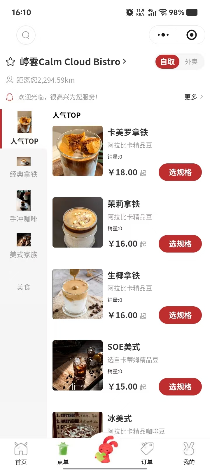 嵉雲 奶茶咖啡案例小程序