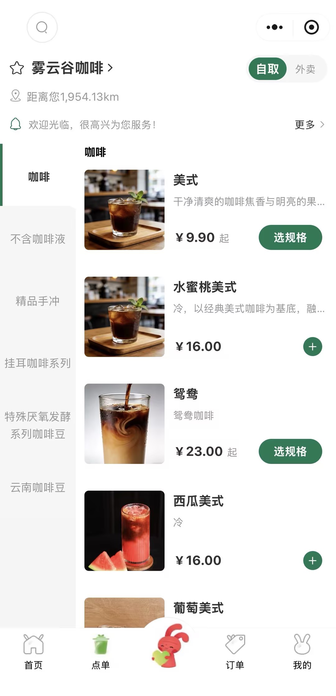 雾云谷咖啡 咖啡店点单案例小程序