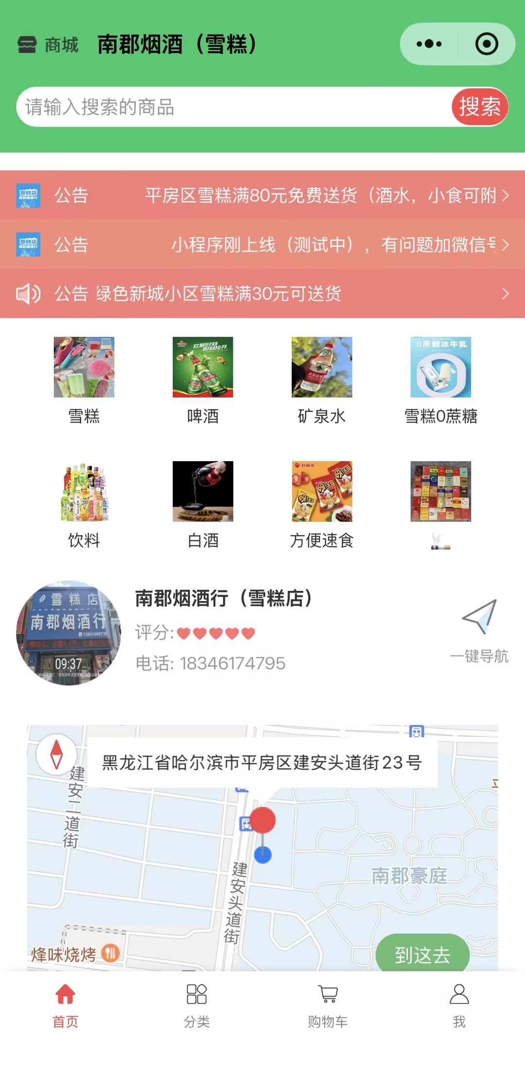 哈尔滨市平房区南郡酒行 雪糕酒水商城案例小程序