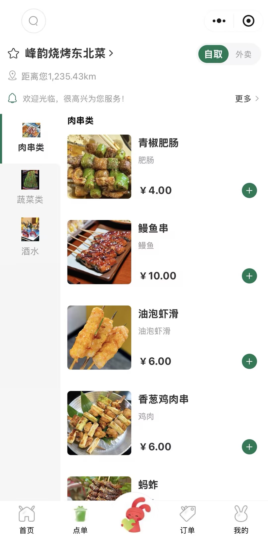 金华市婺城区峰韵饭店 烧烤店点单案例小程序